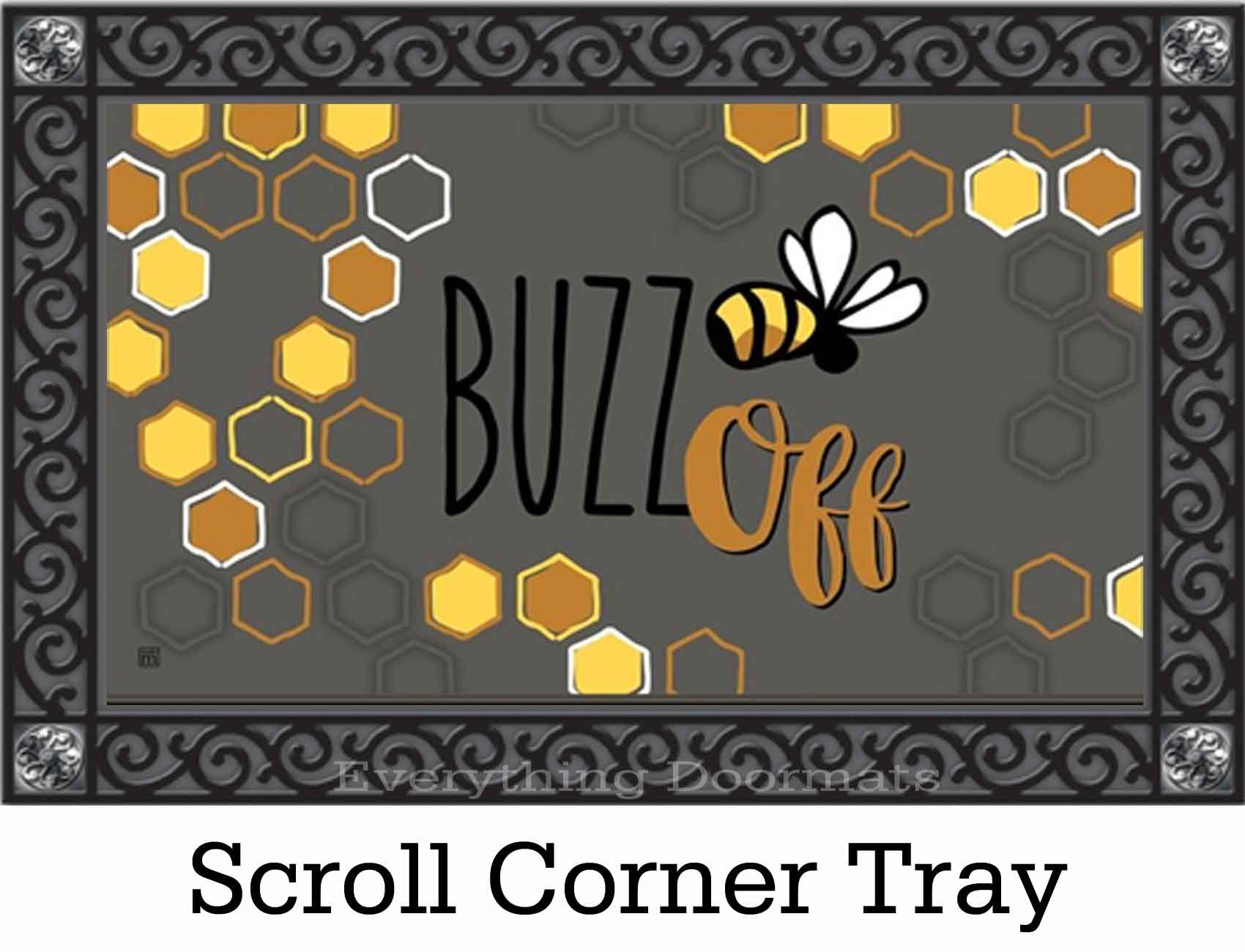 Decorate your home to welcome your guests in style with this Buzz Off MatMates doormat. This welcome mat is made using a state of the art dye-sublimation process that permanently dyes the non-woven polyester top surface. The process forces the dyes deep into the fibers of the mat making the fibers fade resistant and beautiful. With the addition of a 100% recycled rubber backing this doormat is made to last and be mildew and water damage resistant. These features make the mat slip resistant and usable in almost any weather condition.