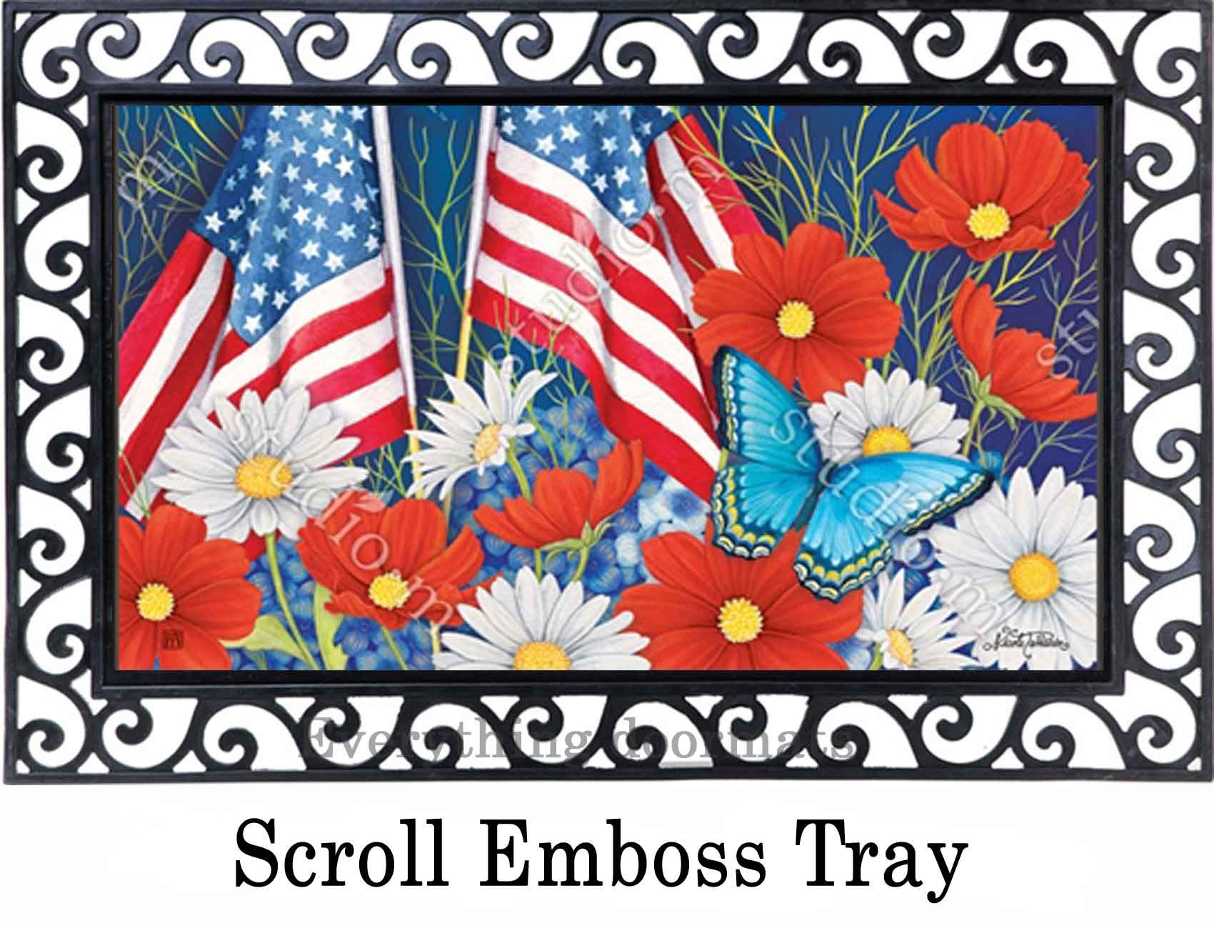 Keep your home updated with the latest holiday decor this Memorial Day or Fourth fo July with this  Red,White & Blue MatMate doormat. This mat is made with a rubber back that helps in keeping your mat slip resistant on almost any floor surface. With the top surface has a gorgeous full color image that will brighten just about any environment. This full color look is created using a dye sublimation process that gives your mat an appealing finish. Place it at your front doorstep, entryway or anywhere that you want to update your decor for the Patriotic Holidays.