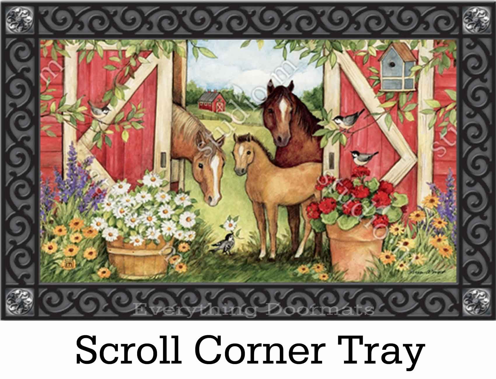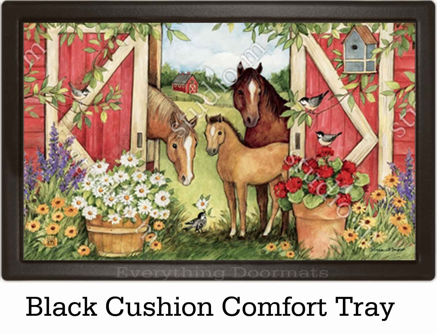 Do you love farm scenes and farm decor? Then this Spring on the Farm MatMate insert doormat is the perfect addition to your home. Primarily designed for high traffic areas, this doormat is created using a process that gives the mat beautiful coloring in addition to making the mat fade and stain resistant. This makes it ideal for use in kitchens, bathrooms, or even as a welcome mat as it is difficult to soil and if it does get soiled it is extremely easy to clean! (Check out our Cleaning and Care Page for all the details)