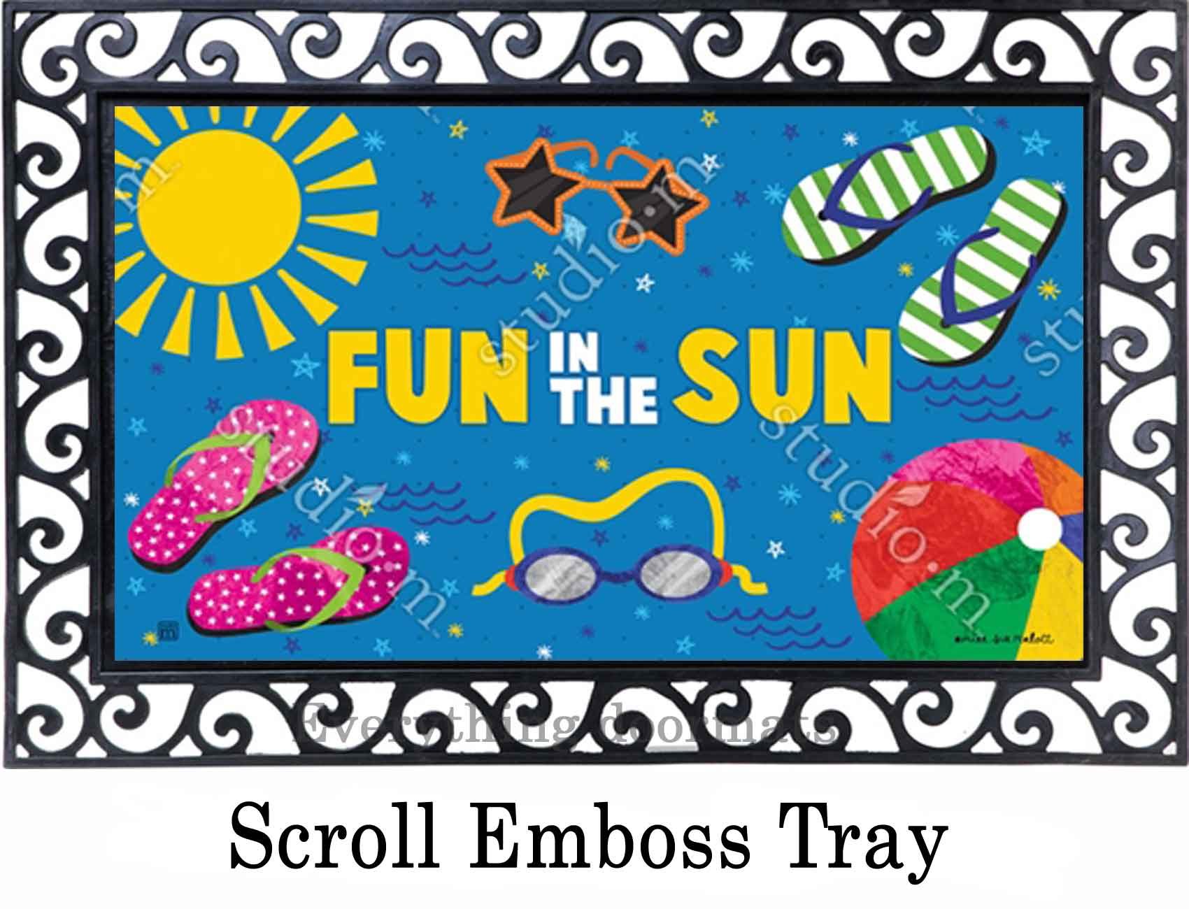 Dressing up your home for the summer? Want to add some fun summer colors and sandals to your decor? Then this Summeritme Fun MatMate Insert Doormat will make the perfect addition to your home. Created using a dye sublimation proces that forces the ink deep into the polyester top surface, this mat is fade and stain resistant. Its gorgeous colors and stunning beauty will fit in just about any environment including both inside and outside your home. Made with a recycled rubber back this mat is slip resistant and so it will not slid around.